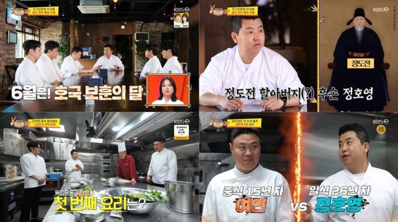 정호영은 메뉴 아이디어를 얻고자 중식 대가 여경래 셰프를 찾아갔다. 정호영은 독립운동가들이 중국 상하이 임시정부에 머물 때 중국 음식을 많이 드셨다는 여경래 셰프의 설명에 꿔바로우 만드는 법을 배웠다. 정호영은 또 여경래 셰프의 아들인 여민 셰프와 광복을 주제로 한 즉석요리 대결을 펼쳐 흥미로움을 자아냈다. 정호영은 두부 요리를 재해석한 두부면 볶음을, 여민 셰프는 만두를 선보였지만 심사를 맡은 여경래 셰프는 정호영의 손을 들어줬다. 그러자 정호영은 여민 셰프를 바라보며 “아버지한테 혼나면 우리 가게에 일할 자리가 있으니 언제든 와도 된다”라고 말해 훈훈함을 선사했다.
