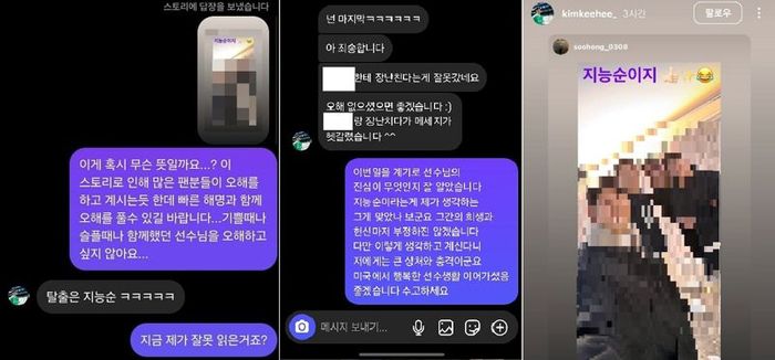 게시물을 확인한 울산HD 구단 팬은 김기희에게 ““스토리로 인해 많은 팬들이 오해하고 있는데, 무슨 뜻이냐”고 메시지를 보냈다.