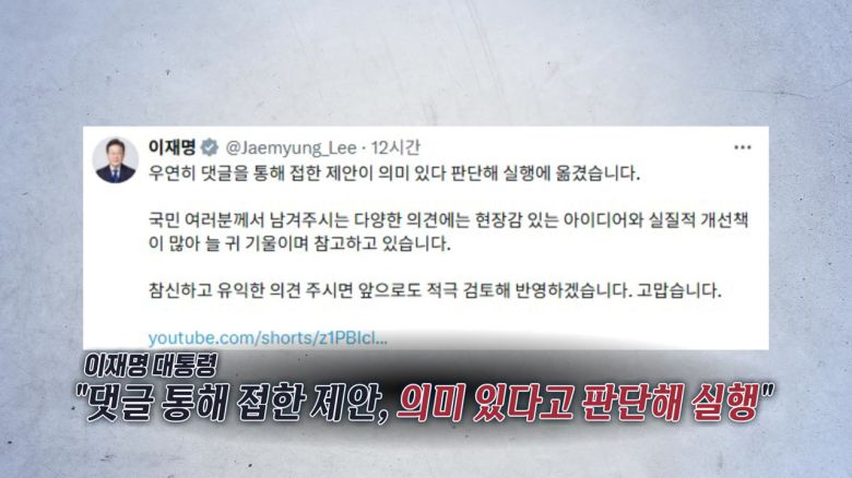 이재명 대통령은 '우연히 댓글을 통해 접한 제안이 의미 있다고 판단해 실행에 옮겼다'고 설명했고요.