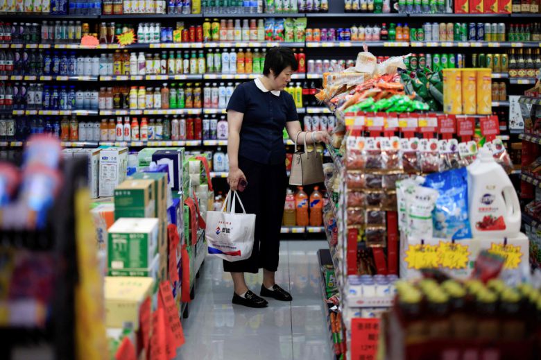 중국 랴오닝성 선양에 있는 한 마켓에서 한 여성이 9일 쇼핑을 하고 있다. 선양(중국)/AFP연합뉴스
