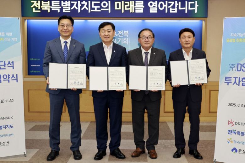 협약식에는 디에스단석 한승욱·김종완 공동 대표와 김관영 전북지사, 강임준 군산시장, 문문철 한국산업단지공단 전북본부장 등이 참석했다.
