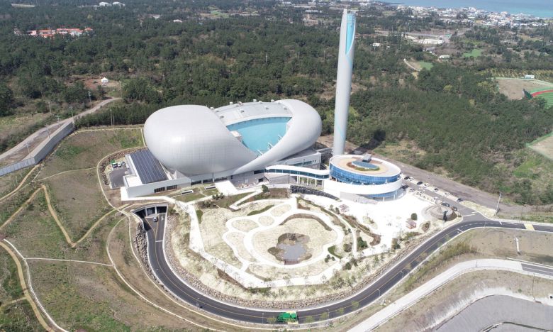 2022년 10월 제주시 구좌읍 제주환경자원순환센터에서 ‘제주환경자원순환센터 주민편익시설 설치사업 기공식’이 열리고 있다. 주민편익시설은 연면적 4144㎡, 지하 1층·지상 2층 규모로 수영장과 유아풀, 사우나, 찜질방, 체련 단련실, 키즈카페, 게이트볼장, 휴게공간 등이 조성됐다. 제주도 제공
