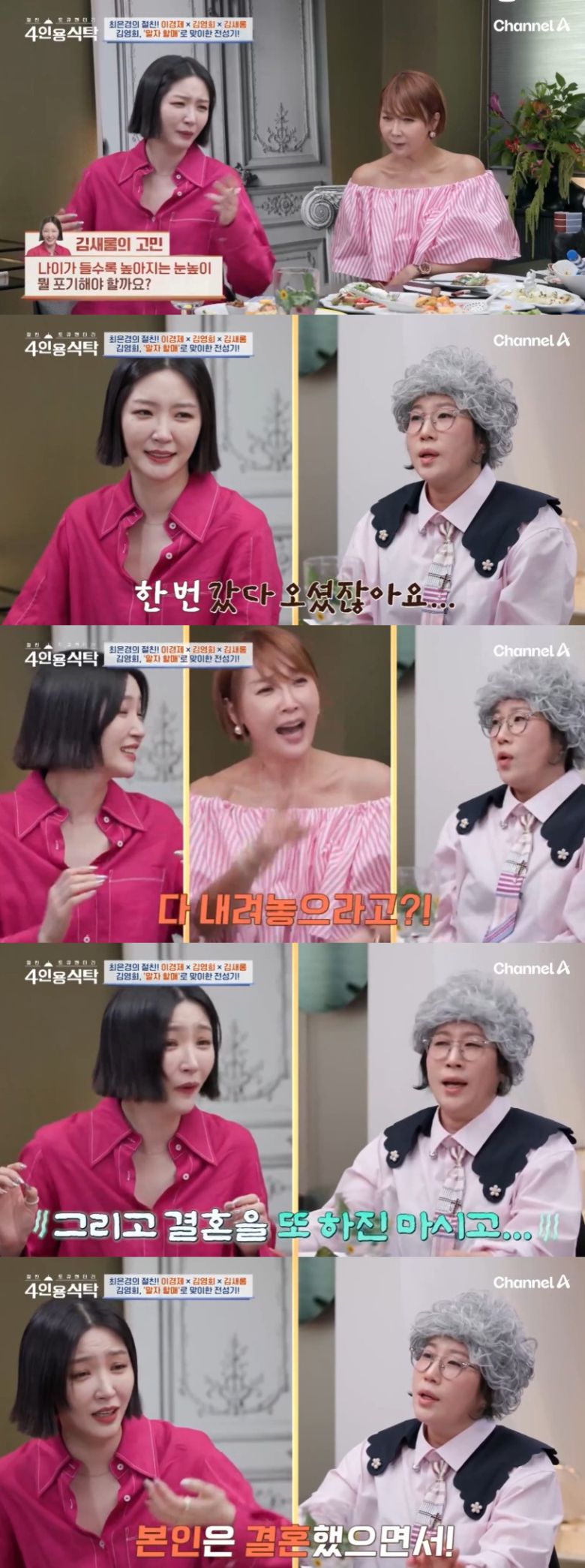 "단 하나도 안 되냐"는 김새롬의 호소에 김영희는 "하나도 없다. 다 내려놔야 한다. 그리고 결혼은 또 하지 마라"라고 이야기했다.