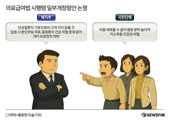 이에 대해 복지부 관계자는 "약을 자주 처방받아야 하는 고혈압, 당뇨병 등 만성질환자들은 기본 진료비만 나오기 때문에 기존 1000원내던 것과 비슷한 수준일 것"이라며 "입원은 기존 제도와 동일하게 무료로 적용돼 중증환자들이 병원을 못 가 위험한 상황이 생길 수준은 아니다"고 설명했다.
