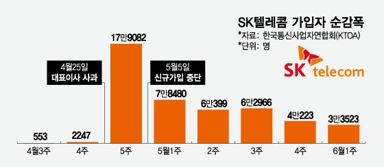 SKT의 가입자 순감 폭은 사태 발생 전인 4월 1~3주차 매주 500명 안팎을 유지하다 유출사태가 처음 알려진 4주차에 2247명으로 증가했다. SKT가 대표이사 사과와 함께 유심 무상 교체를 개시한 5주차에는 17만9082명으로 치솟았다. 업계에선 유심 교체순서를 기다리다 지친 SKT 가입자들이 번호이동을 택한 것으로 풀이한다.