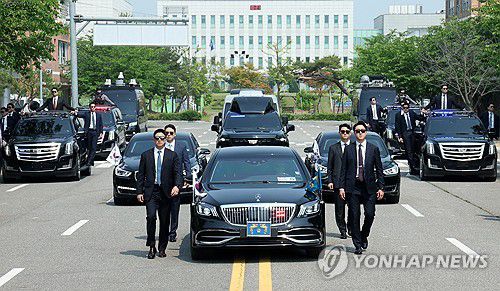 대통령경호처, 취임식 차량 퍼레이드 훈련 공개(서울=연합뉴스) 홍해인 기자 = 대통령경호처 경호관들이 탑승한 차량들이 27일 서울 강서구 경호안전교육원에서 제21대 대통령 취임식을 앞두고 취임식 차량 퍼레이드 훈련을 하고 있다. 2025.5.27 [대통령실통신사진기자단] hihong@yna.co.kr