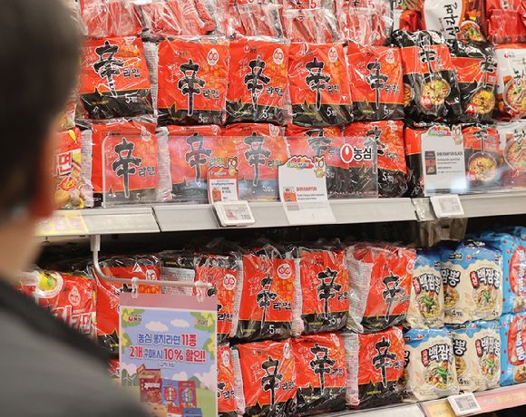 대형마트의 라면 진열대 모습. [사진=연합뉴스] |