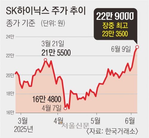 시가총액 2위인 SK하이닉스도 전 거래일 대비 2.0% 상승한 22만 9000원에 장을 마감했다. 장중 한때 23만 3500원까지 상승하며 연고점을 또 한 번 새로 썼다.