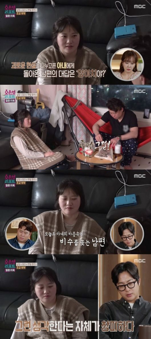 9일 방송된 MBC 예능 프로그램 '오은영 리포트-결혼 지옥’(이하 결혼지옥)에는 매 순간 눈치를 보며 남편이 지시하는 대로 행동하는 아내와 소극적이고 효율적이지 못한 아내가 답답한 남편 '조교 부부’가 출연했다.