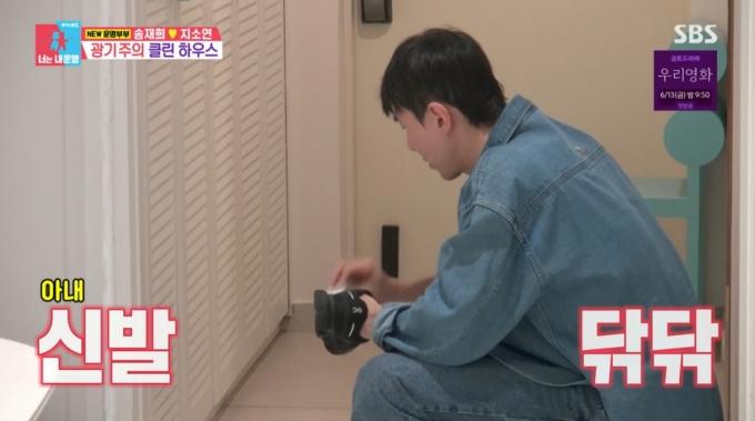 아내의 신발을 닦는 송재희. /사진=SBS '동상이몽 2 너는 내 운명' 캡처