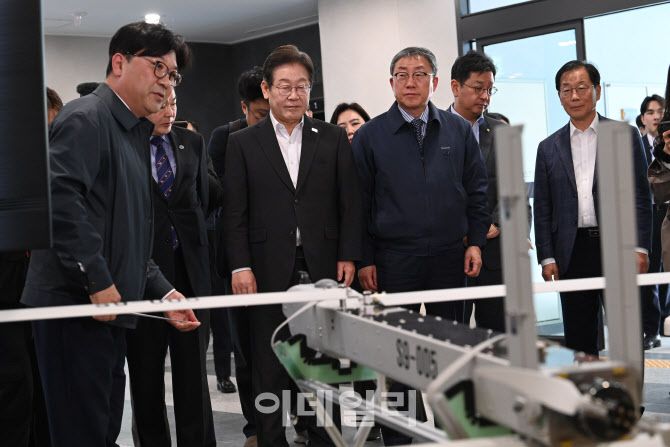 지난 4월 17일 당시 이재명 더불어민주당 대선 경선 후보가 대전 유성구 국방과학연구소를 찾아, 현재 개발중인 무기체계를 둘러보고 있다. (사진=국회사진취재단)