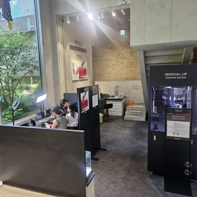 맞춤형 립 제조 서비스에 대한 현장 반응도 뜨겁다. AI 기기와 전문가 진단을 통해 가장 잘 어울리는 색상을 추천해 현장에서 립 제품을 만들어준다. 헤라의 대표 제품인 '센슈얼 립'을 벨벳·글로스·플럼핑 3가지의 제형과 142개의 색상, 5가지의 향 안에서 선택할 수 있다. 아모레성수에서는 매일 다양한 조합으로 총 2000여개의 립 제품이 실시간으로 제조되고 있다. 아모레퍼시픽 관계자는 "이같은 립 제품은 아모레성수에서만 구매할 수 있어 국내 여행을 올 때마다 관련 서비스를 이용하는 일본인 고객도 있다"며 "전문가 진단을 통해 나만의 립 제품을 만들 수 있다는 점 때문에 반응이 좋다"고 말했다.