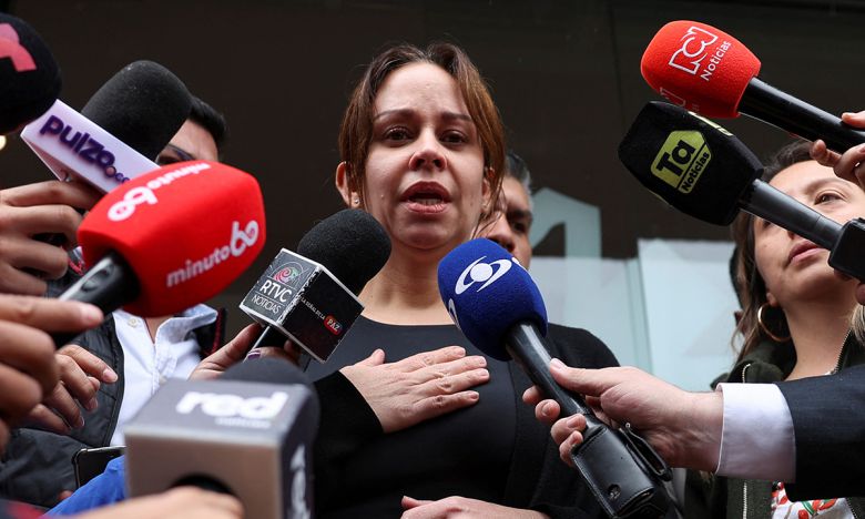 거리 유세 중 총격을 당한 콜롬비아의 야권 대선주자 미겔 우리베 투르바이 상원의원의 아내 마리아 클라우디아 타라조나가 8일(현지시간) 언론과 인터뷰를 하고 있다. 로이터연합뉴스 |