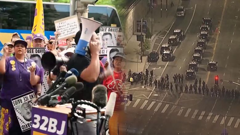 노동자들은 이민세관단속국의 급습을 저지하려다 체포된 이들을 석방하라며 목소리를 냈는데요.