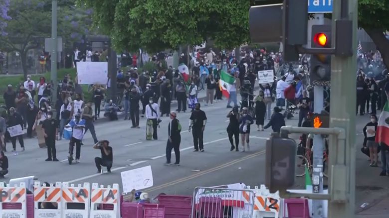 시민들도 차량 경적을 울리며 멕시코 국기 등을 흔들면서 체포된 시위대의 석방 촉구와 이민자들에 대한 지지를 표시하고 있습니다.