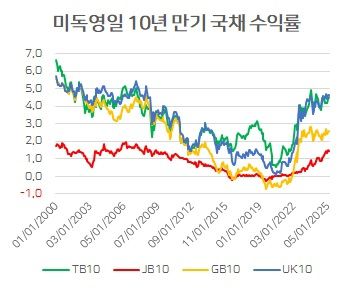 미국은 금융위기와 코로나19 극복 과정에서 막대한 재정을 지출했다. 일본은 30년간의 장기침체에서 벗어나기 위해 천문학적 제정을 지출했다. ‘요람부터 무덤까지의’ 나라인 영국은 복지 강화에 재정을 주로 썼다. 재정건전성을 중요시한 독일은 최근 경기 부양을 위해 부채비율 상승을 감수하고 재정지출을 늘리기로 했다. 독일의 재정지출 확대에 대해서는 긍정적인 평가가 많지만, 어쨌든 나라 모두 장기국채금리는 뚜렷한 상승세다.