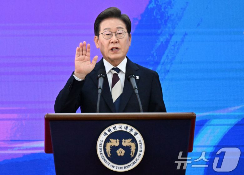 이재명 대통령이 4일 오전 서울 여의도 국회에서 제21대 대통령 취임선서를 하고 있다. 2025.6.4/뉴스1 ⓒ News1 국회사진기자단 |