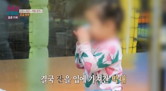 남편이 자리를 비운 사이 놀이방에서 놀던 둘째와 막내가 물을 마시러 왔다. 아내가 둘째를 챙기는 동안 막내는 아빠가 마시던 술잔을 만지작거리더니 입에 가져다 댔다. 스튜디오에서 이를 지켜보던 패널들은 모두 경악했다.