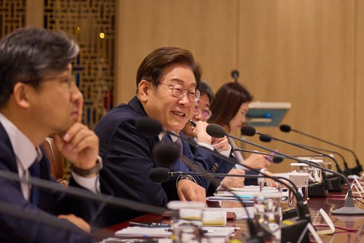 이재명 대통령이 지난 9일 서울 용산 대통령실 청사에서 열린 비상경제점검 2차 태스크포스(TF)회의를 주재하는 모습. 대통령실 제공