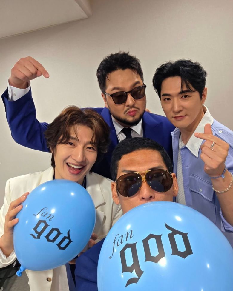 그룹 지오디(god)가 공연을 앞두고 하늘색 풍선을 들고 있다. 박준형 사회관계망서비스(SNS) 갈무리 |