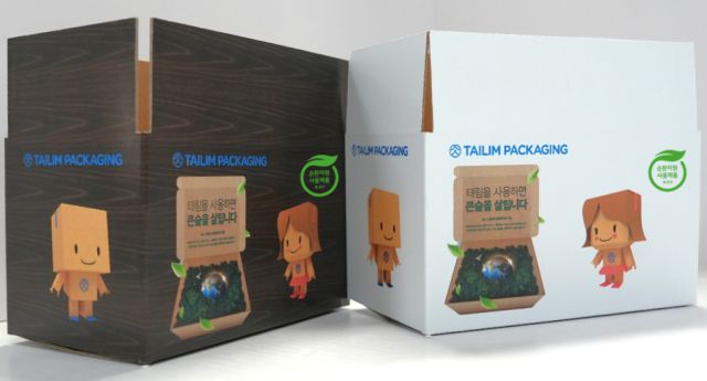 골판지 상자 제조업체 태림포장(011280)이 제지업계 최초로 환경부로부터 ‘순환자원사용제품’ 인증을 획득했다. 태림포장은 이번 인증으로 경기 시흥에 위치한 시화공장에서 만드는 제품에 한해 순환자원사용제품 표시를 붙일 수 있게 됐다.