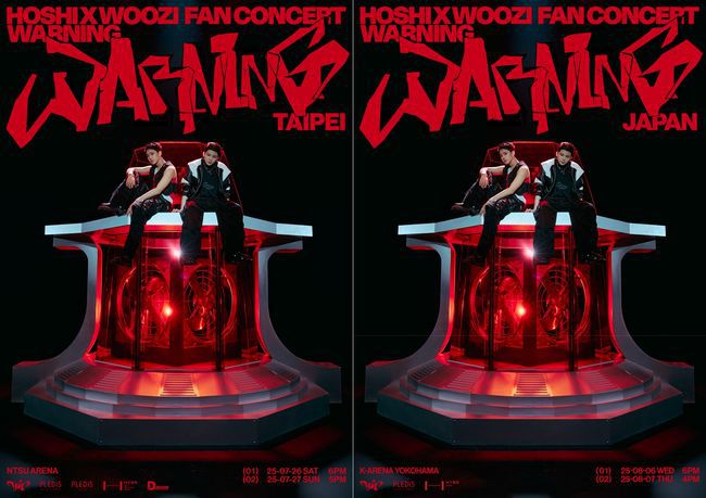 10일 소속사 플레디스 엔터테인먼트에 따르면 호시X우지는 오는 7월 26일~27일 타이베이 NTSU 아레나, 8월 6~7일 일본 K-아레나 요코하마에서 ‘HOSHI X WOOZI FAN CONCERT [WARNING](이하 WARNING)’을 개최한다.