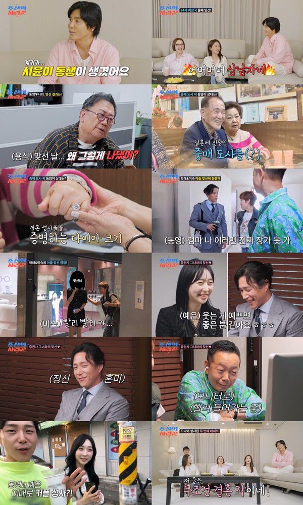이에 김학래♥임미숙은 행선지를 밝히지 않고 아들을 불러냈다. 임미숙이 "어버이날 선물로 결정사에 가달라"고 하자, 김동영은 황당해하면서도 부모님 손에 순순히 결정사로 끌려갔다. 내부에 입성하자 모든 게 아날로그 서류철로 작성된 자료와 연로한 결정사 대표의 모습에 모두가 당황했다. 하지만, 결정사 대표는 "대기업 자제분들, 아나운서, 국회의원 자녀 1/10도 여기서 (결혼)했다"며 '중매 대통령'다운 경력을 소개했다. 이때 임미숙의 눈에는 실력을 상징하는 '17캐럿 다이아 반지'가 들어왔다. 결국 임미숙은 "동영아, 잘 왔다"며 성공을 확신했다.