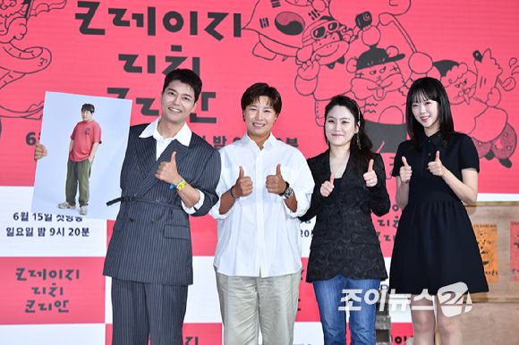 [조이뉴스24 김양수 기자] '크레이지 리치 코리안' 제작진과 MC들이 '미운우리새끼' '태어난 김에 세계일주4'와 맞대결에서 승리를 자신했다. 민희진 전 어도어 대표를 패러디한 복장으로 등장한 이창수 PD는 "'미우새'보다 20분, '태계일주4'보다 10분 늦게 방송되지만, 맞다이(맞대결)로 들어가도 이길 자신 있다"고 목소리를 높였다.