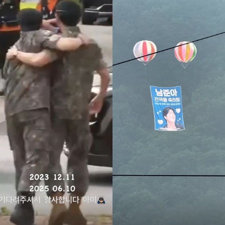 공개된 사진 속에는 이날 전역한 RM을 반기는 팬들의 환영 문구가 적힌 현수막들이 하늘을 날거나 나무들을 둘러싸고 있는 모습. 팬들은 RM의 본명 김남준을 부르며 "너무 보고 싶었어"라며 깊은 그리움을 꺼내 보일 수 있었다.
