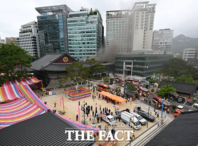 [더팩트ㅣ이다빈·정인지 기자] 10일 대한불교조계종 조계사에서 불이 나 스님과 종무원들이 긴급 대피했다. 인명피해는 없는 가운데 경찰과 소방당국은 문화재 소실 우려에 대비해 조치에 나섰다.