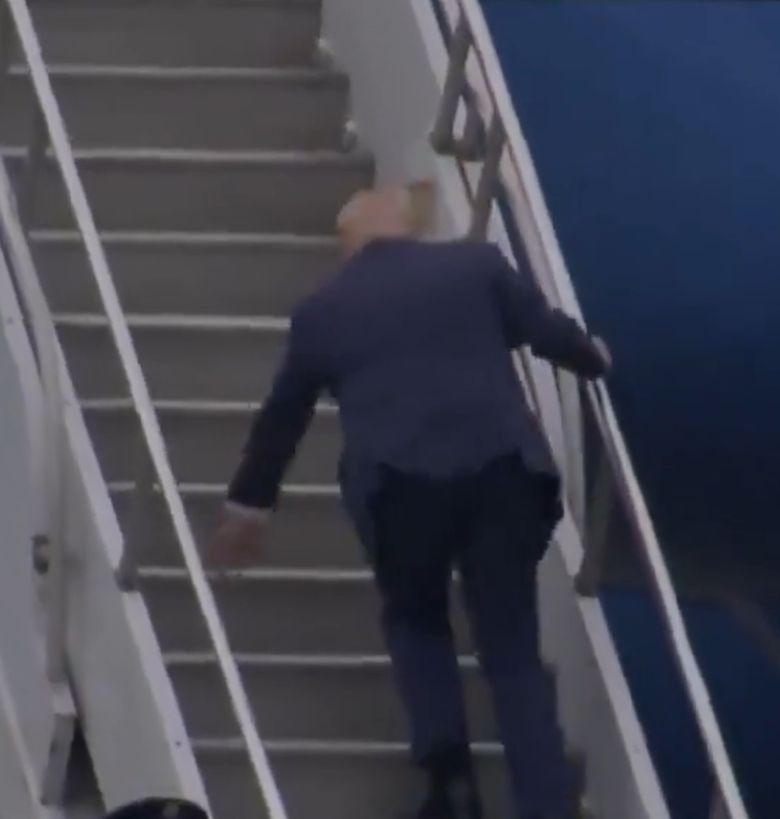 이 영상은 SNS를 타고 확산했고, 2021년과 2023년 에어포스원을 오르다 계단에서 넘어진 바이든 전 대통령을 재소환했습니다.