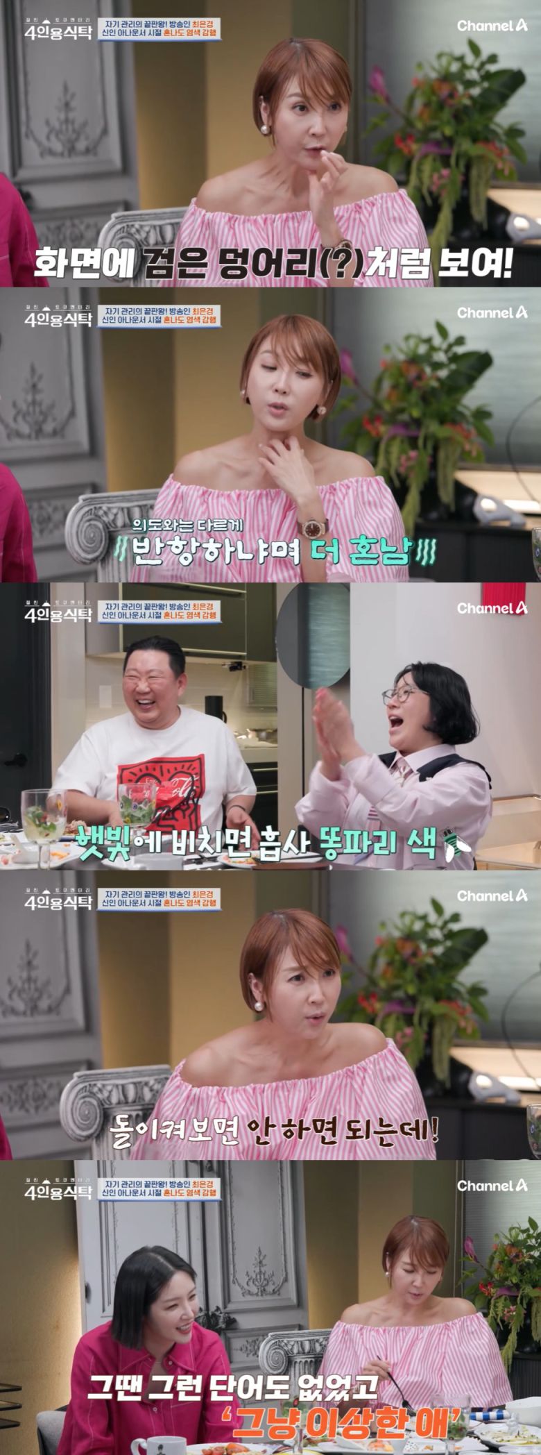 9일 방송한 채널A '절친 토큐멘터리-4인용식탁'에는 최은경이 출연해 절친 김영희, 김새롬, 이경제를 초대해 대화를 나눴다.