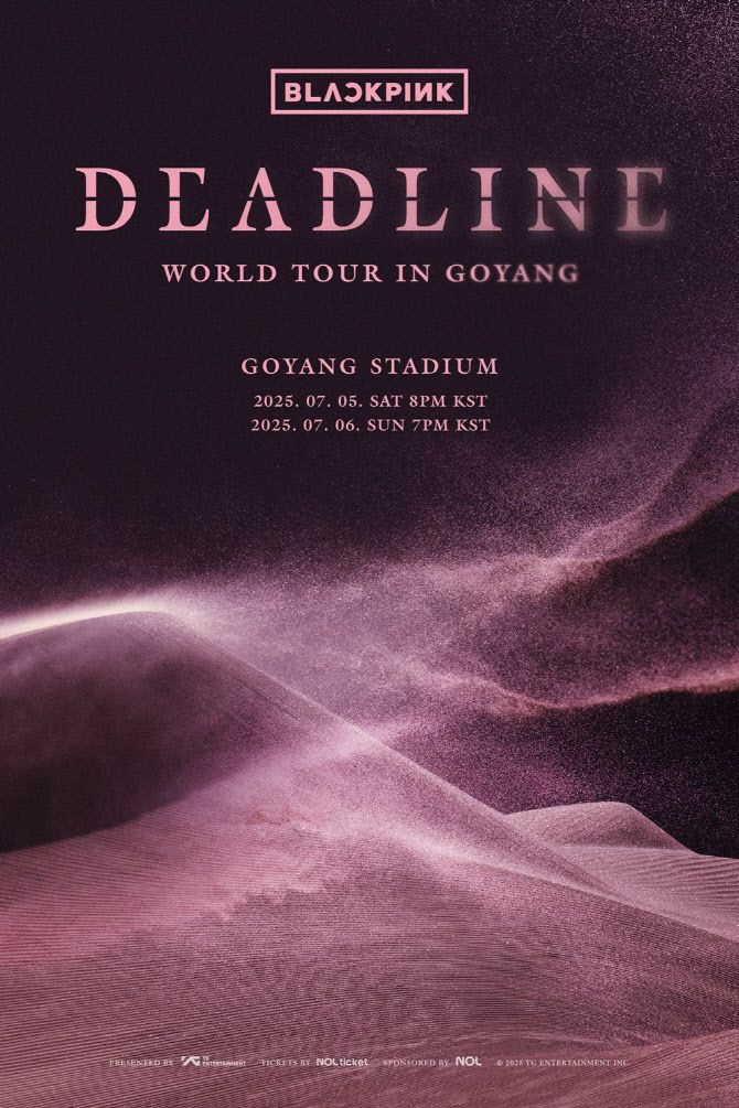 YG엔터테인먼트는 10일 공식 사회관계망서비스(SNS)에 ‘블랙핑크 월드투어 <데드라인> 인 고양 메인 포스터’(BLACKPINK WORLD TOUR IN GOYANG MAIN POSTER)를 게재했다.