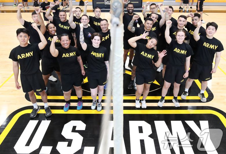(대구=뉴스1) 공정식 기자 = '한미 친선 주간'을 맞아 10일 오전 대구 남구 캠프워커에서 열린 체육대회에 참가한 카투사 장병과 미군이 배구 경기를 마친 뒤 환호하고 있다. 주한미군 제19지원사령부에 따르면 이 행사는 스포츠와 다양한 문화 교류를 통해 한미 장병의 전우애와 친목을 다지기 위해 지난 1978년 처음 시작돼 지금까지 이어지고 있다. 2025.6.10/뉴스1