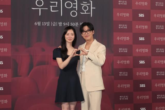배우 전여빈, 남궁민이 10일 서울 용산구 CGV 용산아이파크몰에서 열린 SBS금토드라마 '우리영화' 제작발표회에서 포즈를 취하고 있다. 연합뉴스