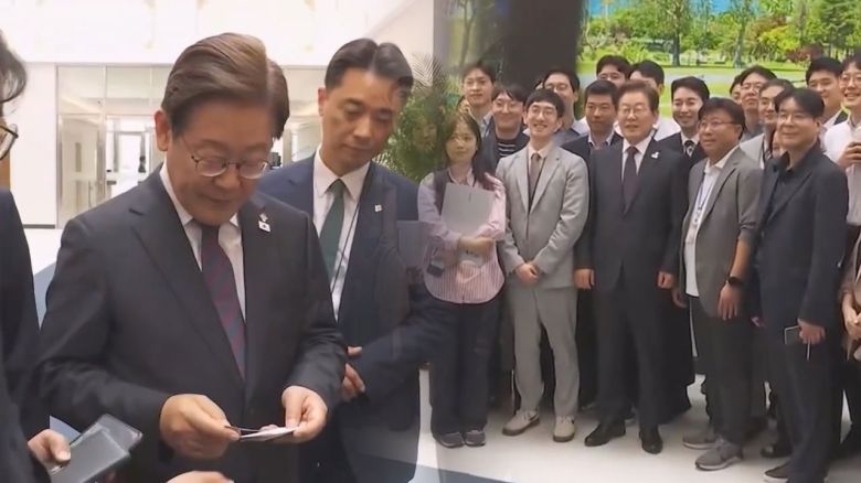 "누가 사진 못 찍었다고?" 청사서 기자들 만난 이 대통령 일일이.. [현장영상]
