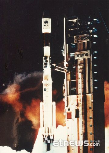 우리별 1호기 1992년 8월 11일 프랑스령 기아나 쿠루 우주기지에서 발사에 성공했다. 하늘로 힘차게 날아오르는 우리별 1호. KAIST 제공