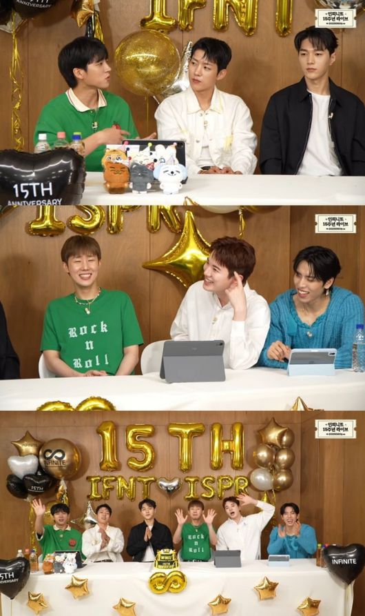 인피니트(김성규, 장동우, 남우현, 이성열, 엘, 이성종)는 데뷔 15주년 기념일인 지난 9일 오후 8시 공식 유튜브 채널을 통해 여섯 멤버 완전체로 라이브 방송을 진행했다.