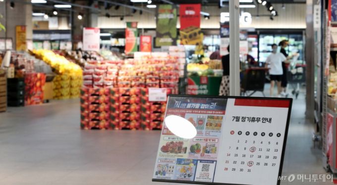 서울 서초구의 한 대형마트에 휴무일 안내문이 게시돼 있다. 2024.7.1/뉴스1 Copyright (C) 뉴스1. All rights reserved. 무단 전재 및 재배포, AI학습 이용 금지. |