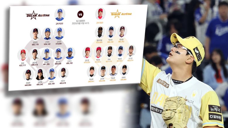 KBO가 프로야구 2025 시즌 올스타 팬 투표 1차 중간 집계 결과를 어제(9일) 발표했습니다. 전체 137만여 표 중 절반 이상의 표를 얻은 선수가 있었는데요. 과연 누구일까요? 지금 이 장면으로 함께 알아보시죠.