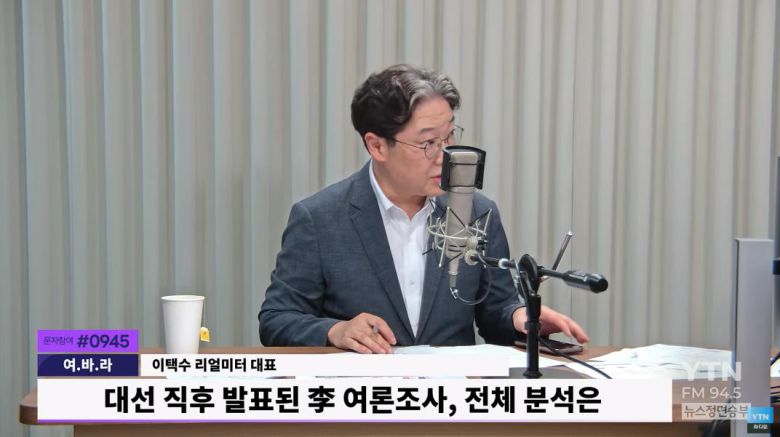 ◆신율: 신율의 뉴스 정면승부 4부 시작하겠습니다. 여론을 바르게 읽는 라디오 약칭 <여바라>죠. 오늘은 리얼미터의 이택수 대표 스튜디오에 모셨습니다. 어서 오십시오.