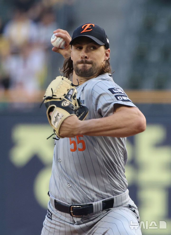 [서울=뉴시스] 김금보 기자 = 29일 서울 송파구 잠실야구장에서 열린 프로야구 2025 KBO리그 한화 이글스와 LG 트윈스의 경기, 1회말 한화 선발 와이스가 역투 하고 있다. 2025.05.29. kgb@newsis.com