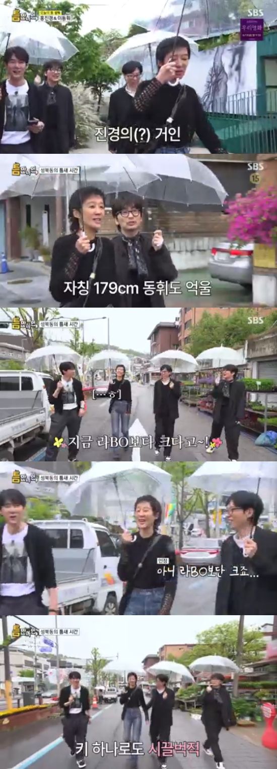 이날 네 사람은 첫번째 틈 주인에게 푸짐한 선물을 선사한 후 혼가분한 마음으로 점심 식사를 하러 이동을 했다. 이동휘는 홍진경에게 "오늘따라 더 키가 커보인다"면서 키를 언급했고, 유재석은 "너 185cm지?"라면서 장난쳤다.