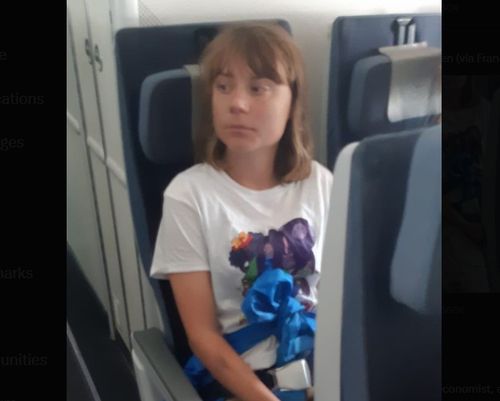 추방 비행기편에 탄 그레타 툰베리[이스라엘 외무부 제공. 재판매 및 DB 금지]