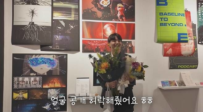 오연수는 "엄마 유튜브 응원한다고 얼굴 공개 허락해줬다"며 양손에 꽃다발을 들고 졸업 작품 앞에 선 큰아들 모습을 보여줬다.