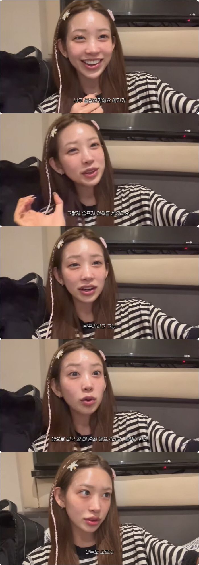 이모할머니와 식도락 여행을 즐긴 최준희는 "난 진짜 위가 큰가보다"라고 말했고 이모할머니는 "위가 크다. 아기 때도 우유 먹여놓고 흔들면 배에서 꿀럭꿀럭거렸다 근데 커서 할머니가 너를 쫓아다녀서 어떻게 해야 되냐"고 말했다. 이에 최준희는 "우리는 전생에 부부였나 보다"라며 "할머니가 미국에 놀러 갔나? 삼촌 보러 잠깐 미국 가면 아기가 그렇게 우울해하고 슬퍼했다더라. 엄마가 보다못해서 너무 불쌍하다고 '할머니랑 통화해라'하고 핸드폰을 주면 커튼 뒤로 쏙 들어가서 그렇게 슬프게 전화를 받았다더라"라고 떠올렸다.