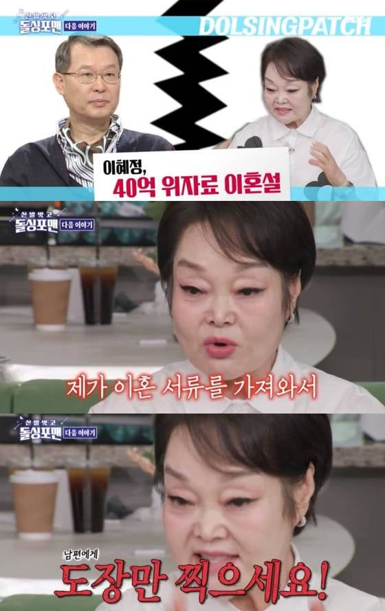 이어 “법원 앞에 도착해서 차에서 내리려고 하는데 운동화 끈이 풀어졌다. 그때 남편이 밟으면 넘어진다면서 그걸 묶어주더라”고 신발끈 하나에 이혼을 번복했다고 설명했다. 그러면서 이혜정은 “그렇게라도 인연을 이어가야 할 것 같았다”고 답했다.