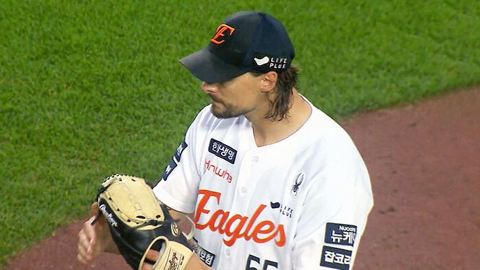 6회까지 1안타 무실점 호투를 펼치던 한화 선발 와이스는 7회 선두타자 양의지의 평범한 뜬공을 중견수 이원석이 놓치면서 노아웃 1-2루 위기에 몰렸습니다.