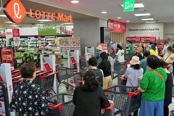 서울시 노원구에 위치한 롯데마트 중계점 입구에서 소비자들이 매장 오픈을 대기하는 모습. [사진출처 = 롯데쇼핑] |