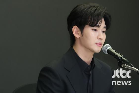 배우 김수현과 법무법인 엘케이비앤파트너스 김종복 변호사가 31일 오후 서울 스탠포드호텔에서 열린 기자회견에 참석해 입장을 밝히고 있다. 박세완 엔터뉴스팀 기자 park.sewan@jtbc.co.kr |